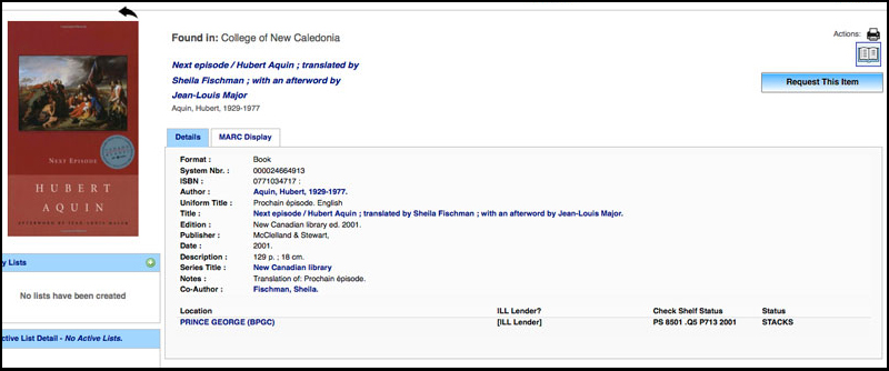 You can always check at the top of any record in the "Found in:" section to discover if the record/item was found via one of the union databases (BC Union Catalogue, ELN Media Cat or ELN Serials Cat) or through a Z39.50 server record look-up (eg. College of New Caledonia).