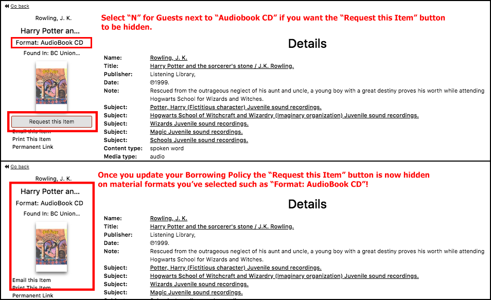 - Please Note: The "Request this Item" button will not display for Guest Patrons unless you have checked-off the Show Request This Button option for them in your Participant Record.